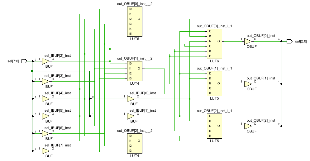 综合出来的电路,比上面两种情况少用了很多资源。因为多余的248个状态vivado不需要编码了,只需要对8个独热码状态进行编码即可。