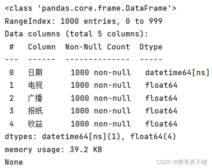 从上图可以看到,总共有5个变量,数据中无缺失值,共1000条数据。