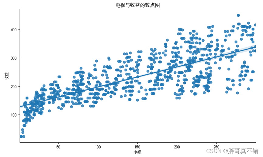 4.3 电视广告投放方式与收益的散点图与拟合线