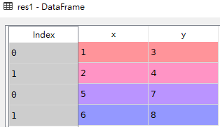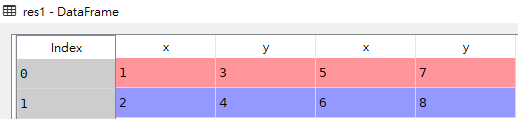 - df1 = pd.DataFrame({'x':[1,2],'y':[3,4]})