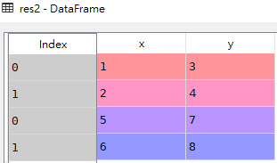 - df2 = pd.DataFrame({'x':[5,6],'y':[7,8]})