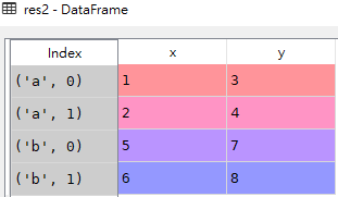 - res1 = pd.concat([df1,df2], keys=['a','b'])