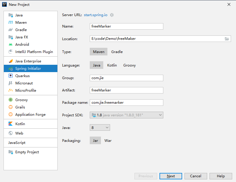 将上面的 Apache Freemarker 勾上 ,Springboot 都帮我们整合好相关依赖了。