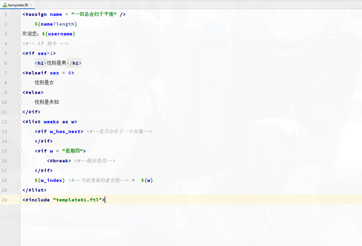 - ${w_index} <#--当前变量的索引值--> = ${w}