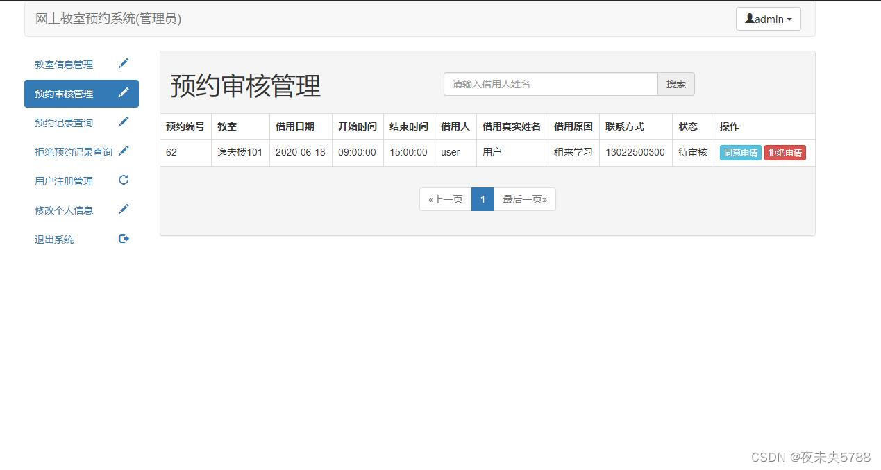 管理员登陆,教室信息管理,预约审核,预约记录查询,注册用户等功能。
