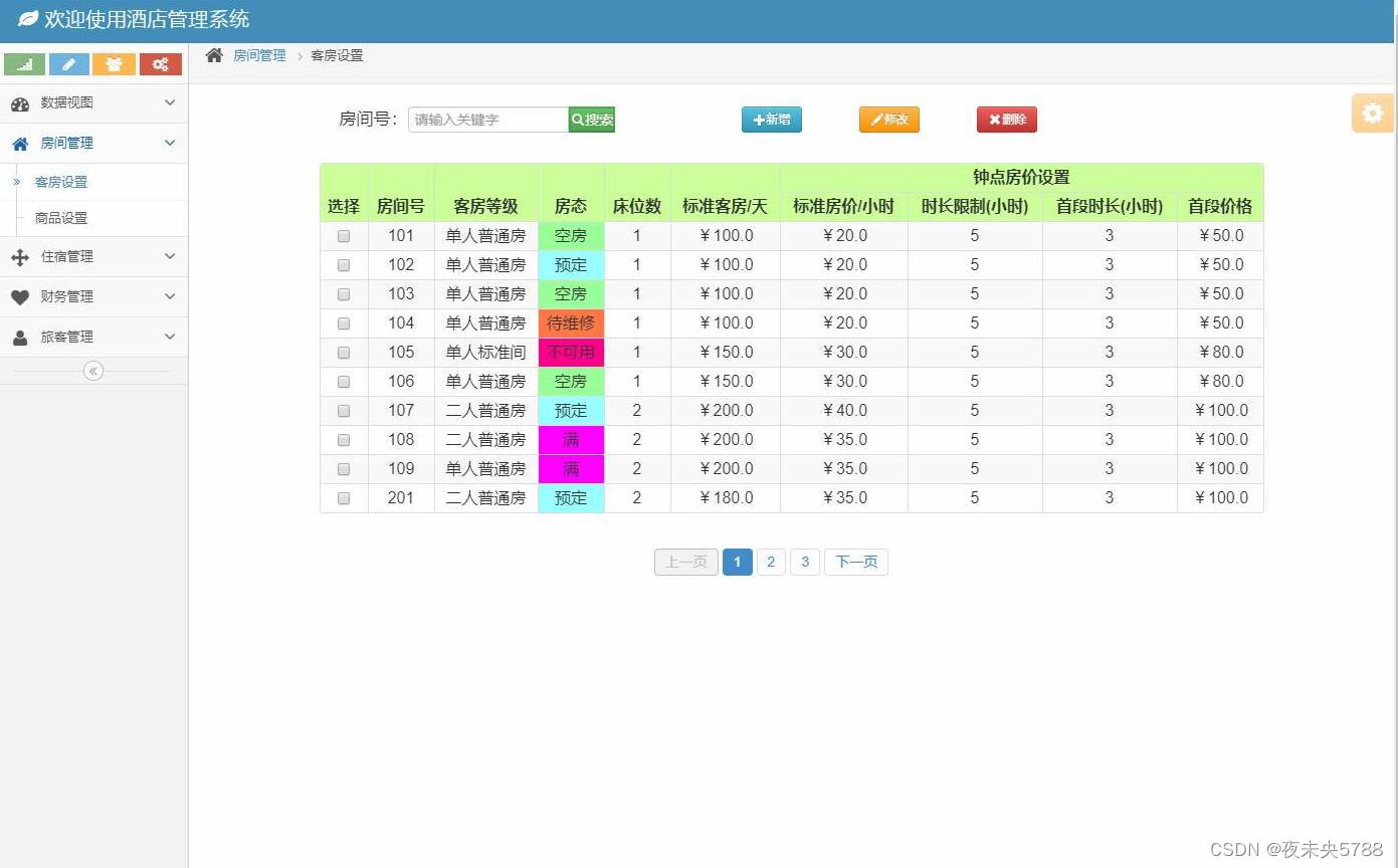管理员登录,收入统计,客房管理,商品管理,客房预订,住宿登记,财务统计,旅客管理,接待对象管理等功能。