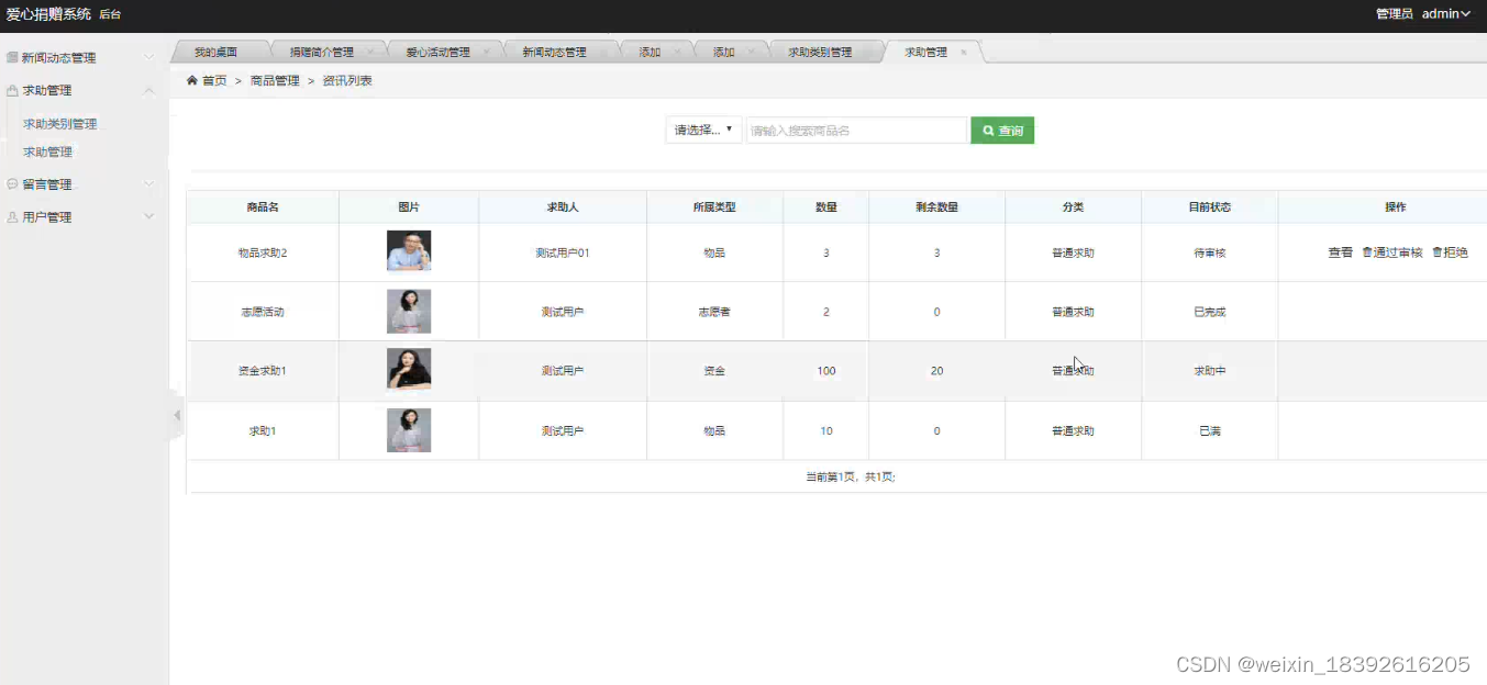 图5.4 爱心活动管理界面