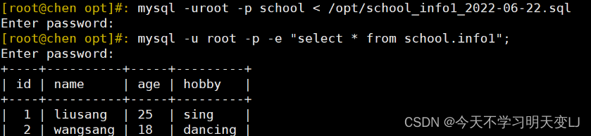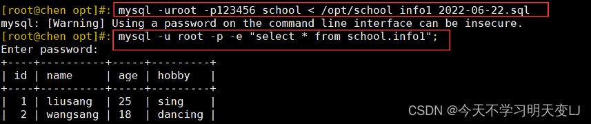 mysql -uroot -p123456 school < /opt/school_info1_2022-06-22.sql