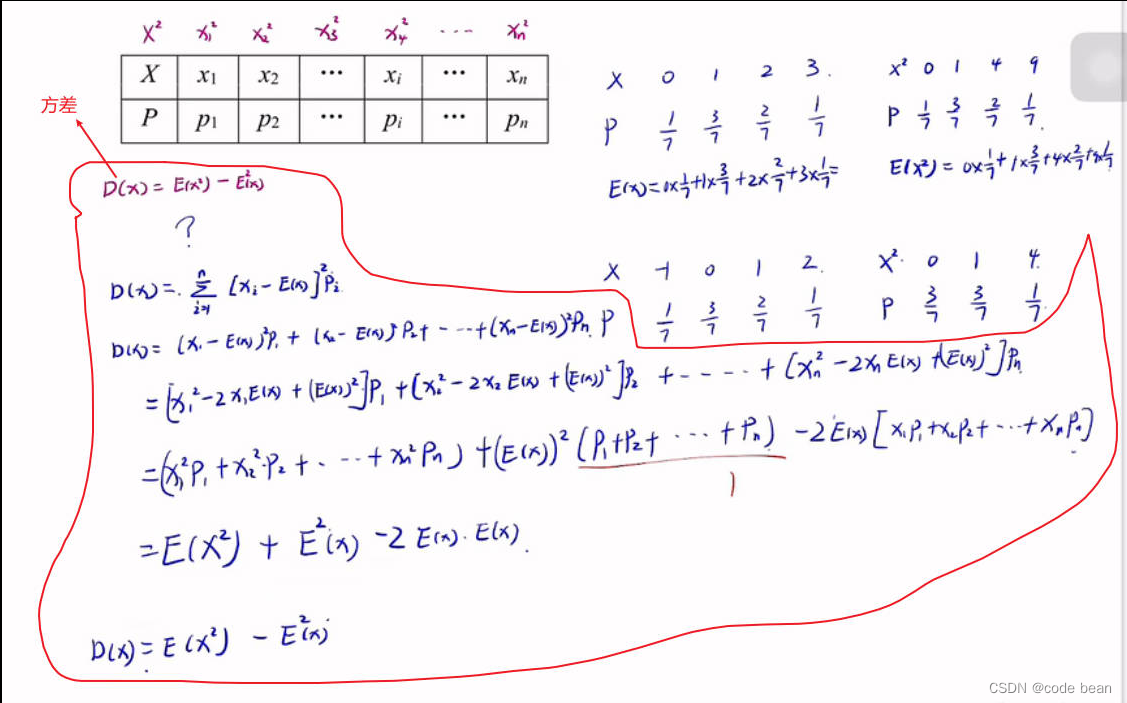 2 方差和期望和概率是强相关的,每种事件对应的值都需要乘上概率P,在做其他计算。