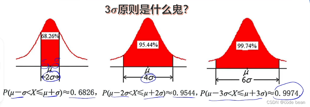 当西格玛确定下来之后,还有个一个3西格玛原则,可以看看:(这里其实还有个标准差的概念,就是这个西格玛,西格玛的平方就是方差)