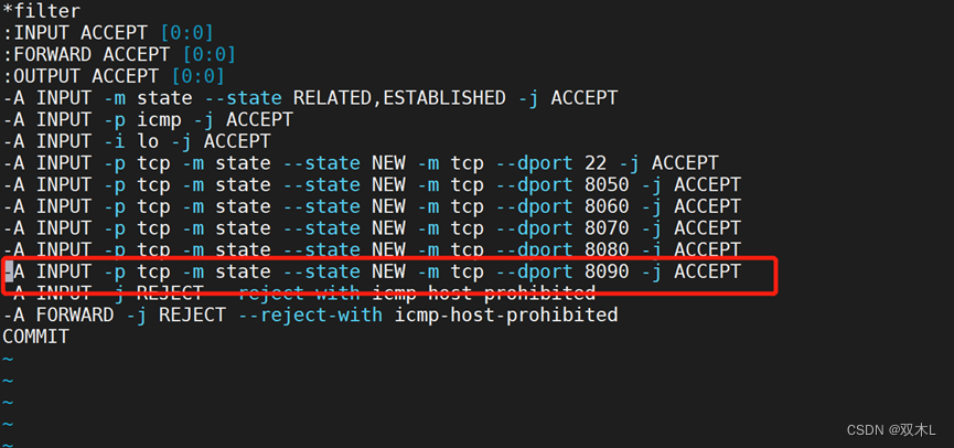 -A INPUT -m state --state NEW -m tcp -p tcp --dport 8090 -j ACCEPT