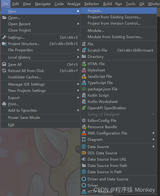 File ->new->Project