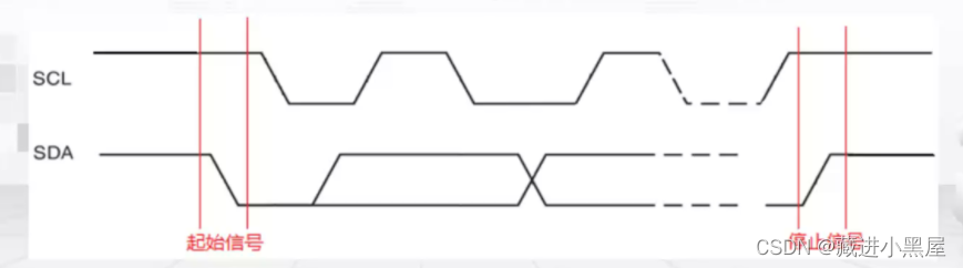 由主机产生,在SCL保持高电平期间,SDA的电平被拉低,称为 I2C总线总线的起始信号,标志着一次数据传输开始。起始信号由主机主动建立的,在建立该信号之前I2C总线必须处于空闲状态。