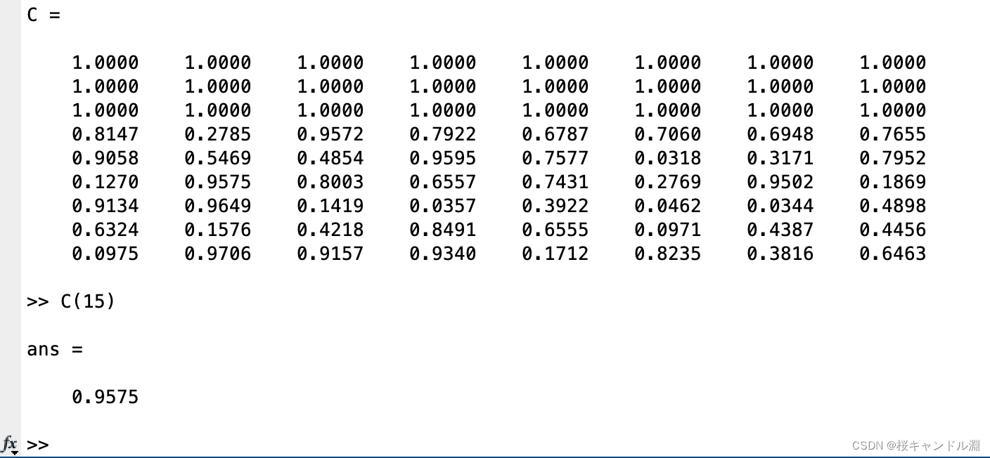 | randperm | 创建一个向量(1×n的矩阵) |