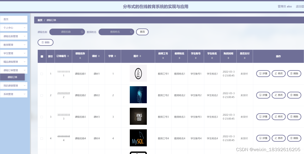 图5-4 课程订单管理界面