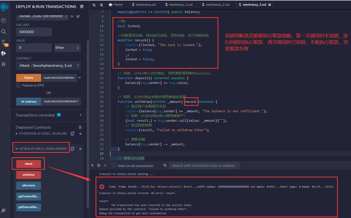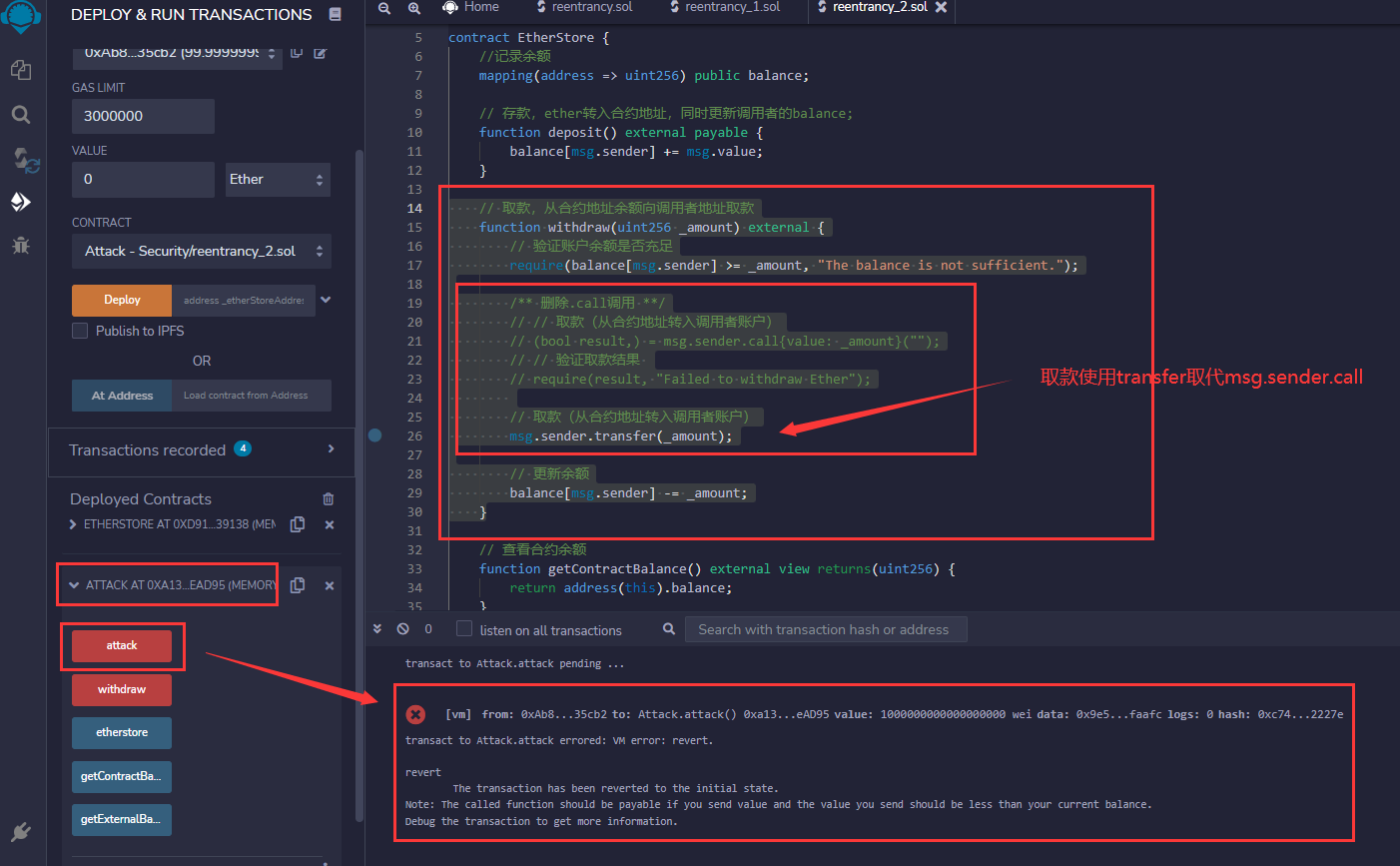 源码可参见: smartcontract/Security/Reentrancy at main · tracyzhang1998/smartcontract · GitHub