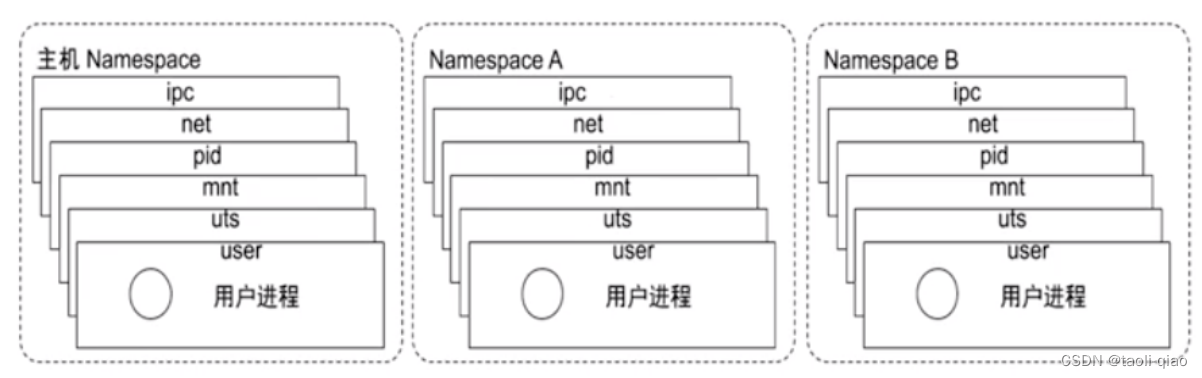 Linux Namespace是一种Linux Kernel提供的资源隔离方案,系统可以为进程分配不同的Namespace,并保证不同的Namespace资源独立分配,进程间彼此隔离,即不同的Namespace下进程互不干扰。具体的namespace如下所示: