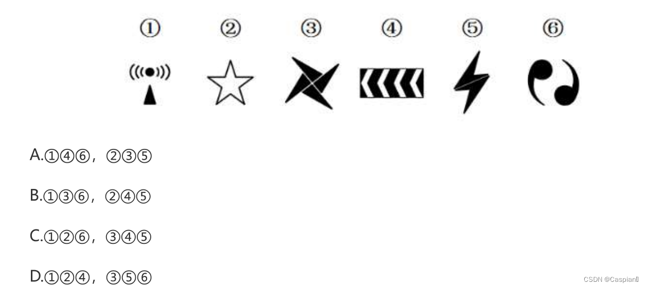 1,3,6为对称图形;2,4,5为非对称图形。