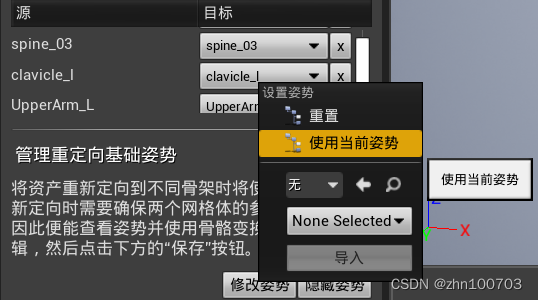 我们将ue4的人物姿势也调整成T-pose,选择旋转网格对齐值