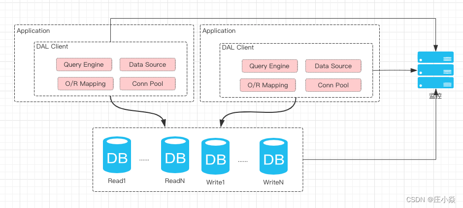 数据访问层DAL的主要特性:支持多数据源:Oracle、MySQL等 统一的API封装 简单、安全 统一数据源 支持分库分表策略 Read/Write Mod N Range Hash 代码生成技术,比如统一加时间戳等等 统一的监控和统计