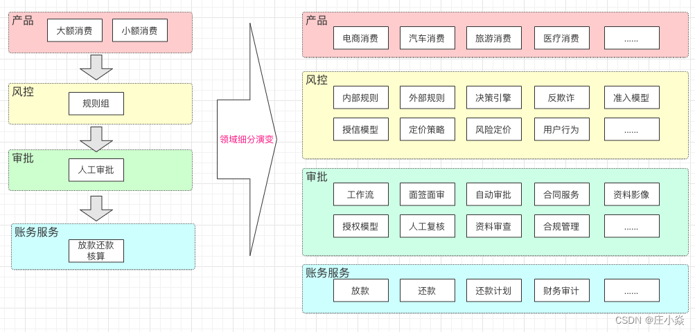 互联网消费金融架构设计时,考虑到的拆分涉及到两方面: