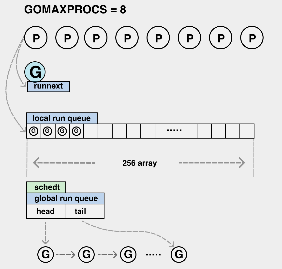 P.schedtick是一个魔法数字,每当schedtick%61=0的时候,它会从全局global run queue中获取G消费
