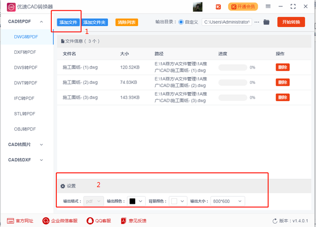 在工具右上角设置【输出目录】,用以保存cad转化为pdf的文件。最后点击右上角红色按钮【开始转换】,完成后工具会自动打开输出文件夹。【cad图片怎么转换成pdf格式】