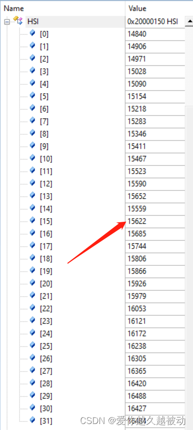 这个数组是用来保存,在各个Trimming_Val下(HSI校准一共32个),测量到的周期值,后面会贴出来实测数据。这个值理想情况下应该就是前面计算得到的15625。也就是说,测到的数值越接近这个数,那么时钟此时越精准。我们的目的也就是找到这个最佳值。