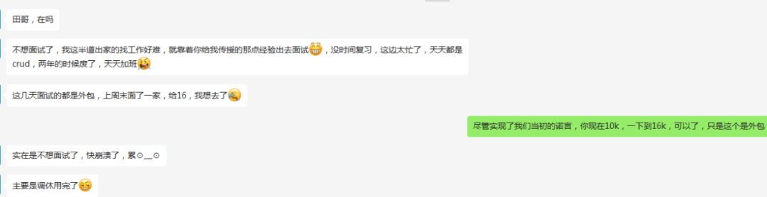 说真的,前面还在犹豫去哪家,但综合考虑一下,还是想去继续去外包,钱多就行。