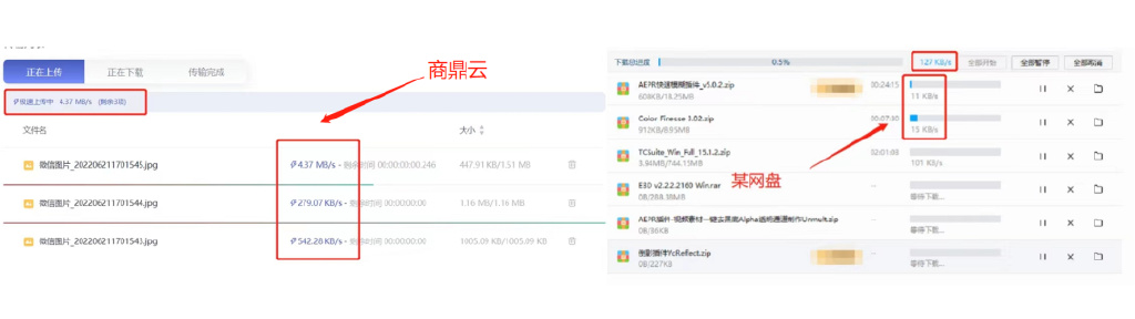 小编废话少说给大家看对比你就明白了,对比某家网盘,商鼎云的传输速度真正做到了无限制,可同时下载多个文件(不超过5个),最重要的是无需会员!