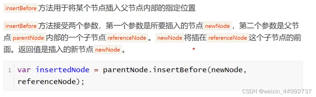 这个方法既可以插入js新创建的节点对象,也可以移动已经存在的节点对象。