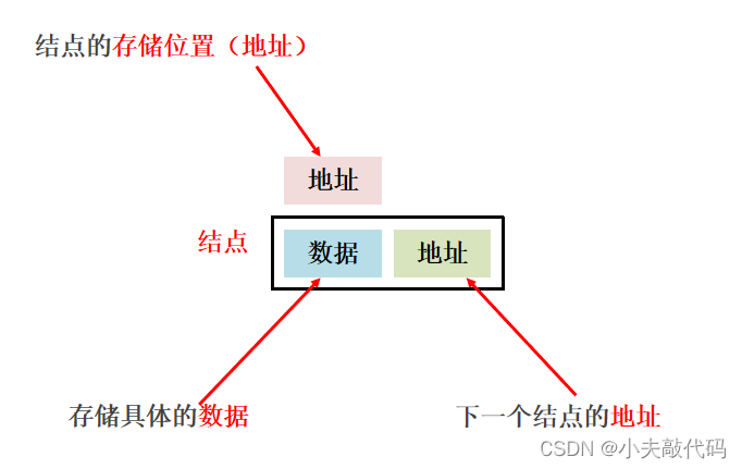链表中的元素是在内存中不连续存储的,每个元素节点包含数据值和下一个元素的地址。