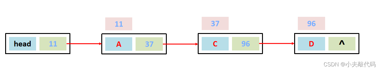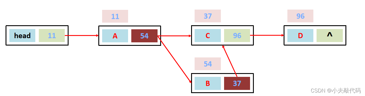 ②数据A对应的下一个数据地址指向数据B。
