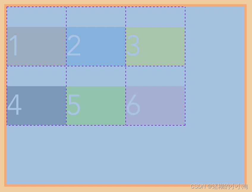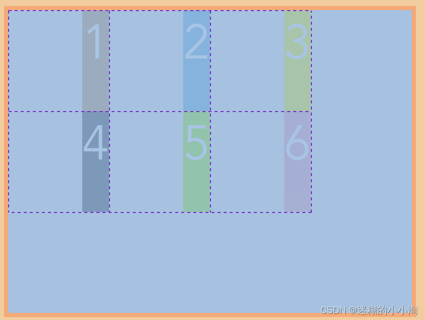 grid-column-start::span 2 表示从子元素起始列网格线跨越两条网格线距离;