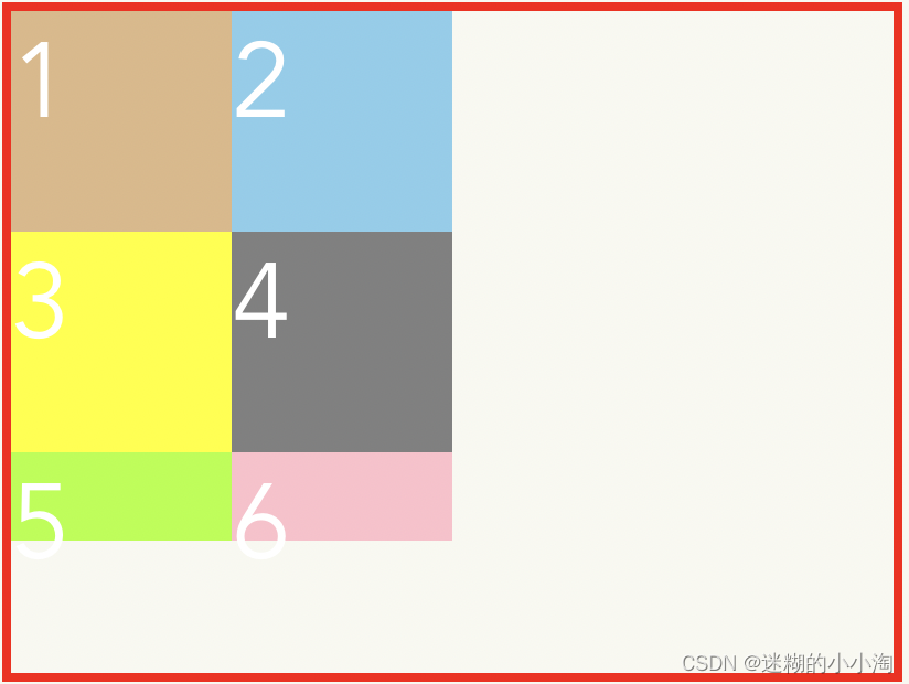 ![]() | 设置为2行2列,排不下的就会用auto形式,自动根据父元素大小进行排列