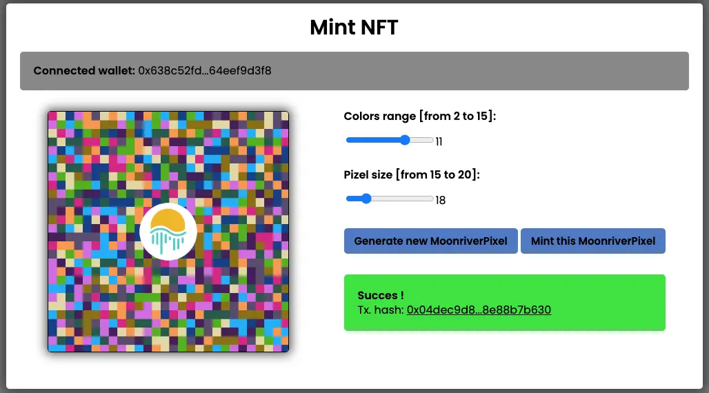 第一名:NFTs Showcase & Mint Dapp on Moonriver