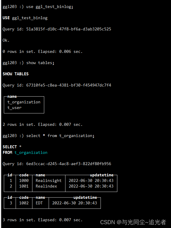 CREATE DATABASE test_binlog ENGINE = MaterializeMySQL('ggl203:3306','ggl_test','root','123456');