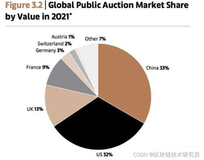 2021年不同国家在全球公开拍卖市场中的份额占比