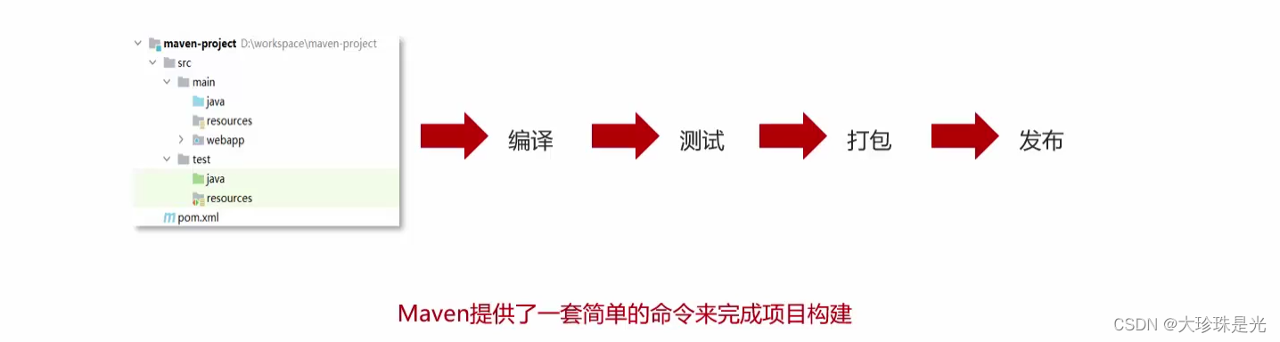 提供了一套标准化的构建流程(编译,测试,打包,发布...)