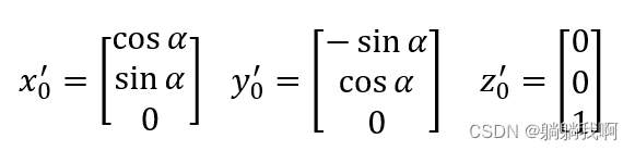 从而我们可以得出新坐标系O-x0'y0'z0' 关于参考坐标系O-x0y0z0 的旋转矩阵为
