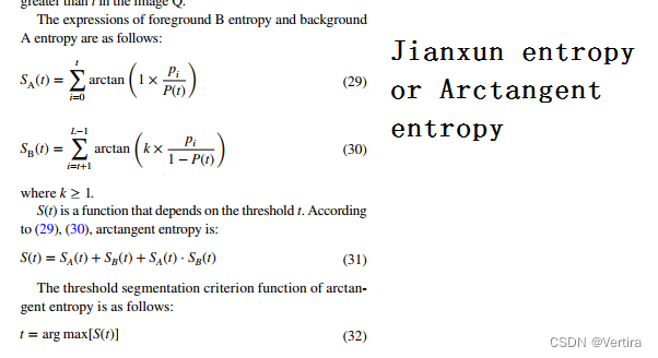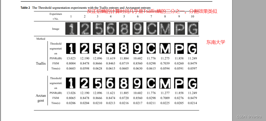 反正切熵是受到Tsallis entropy的启发,通过反正切函数,重建了一种新的信息熵。论文摘要中说的很清楚,与Tsallis entropy, Kapur entropy, Renyi entropy, Minimum error threshold (MET) and Iterative threshold (IT)相比,反正切熵的CPU计算时间最短,计算时间缩小数倍,同时对于浅色字符图像的分割效果最好,最稳定。