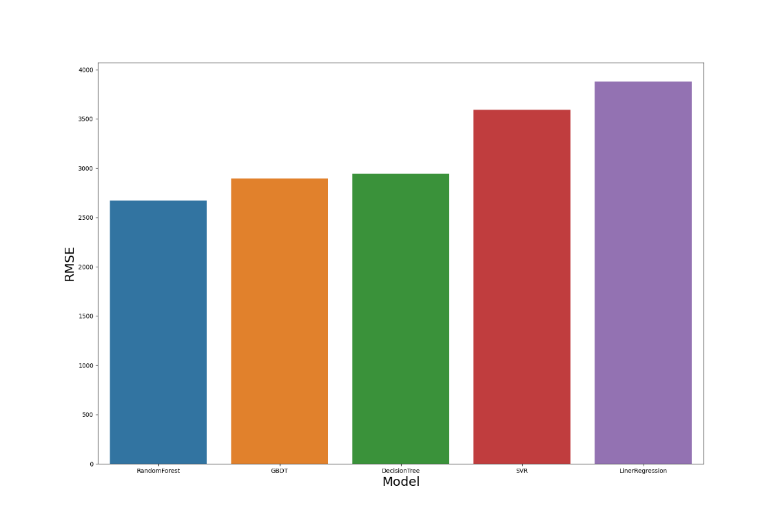 故在进行模型融合时,融合 RandomForest、GBDT、DecisionTree、SVR、LinerRegression。取上述模型评分最高的一次预测结果,进行直接平均后输出。出人意料地,最终结果评分仅有 0.82。