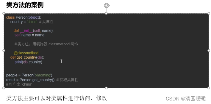 - # print(People.get_country()) #通过类对象去引用