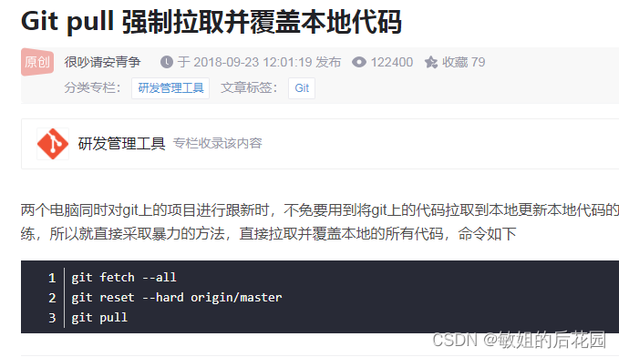 git冲突时拉取并覆盖本地代码