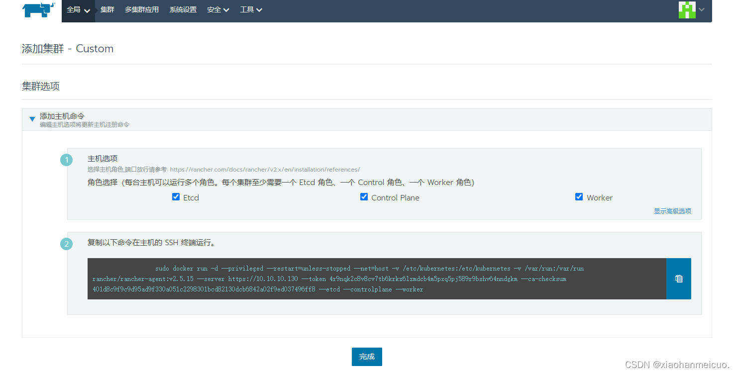 - #两台master节点的话就把复制的命令在两台节点上执行