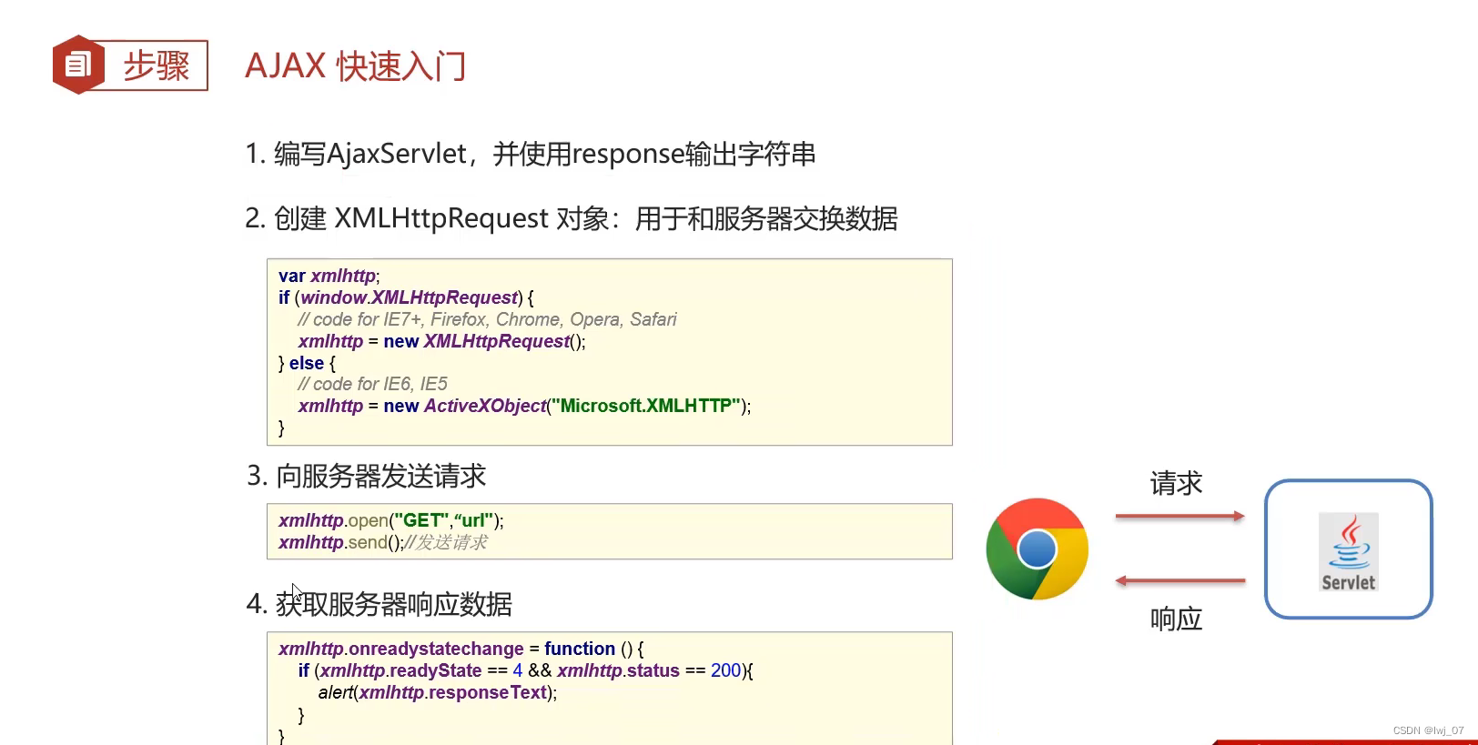 - xhttp.open("GET", "http://localhost:8090/ajax-demo/ajaxServlet"); // 注意:这个地址是总地址(开启服务器后访问的总路径URL)