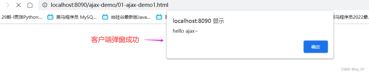 - alert(this.responseText); // this.responseText 就是响应的服务端返回的数据