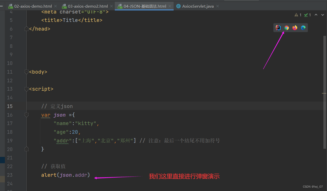 注意2:要在<script>标签里面写ajax或者axios请求或者获取的响应结果