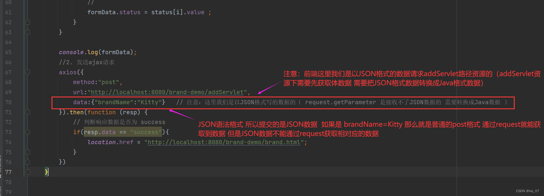 - data: formData // 注意:这里我们是以JSON格式写的数据的( request.getParameter 是接收不了JSON数据的 需要转换成Java数据 )