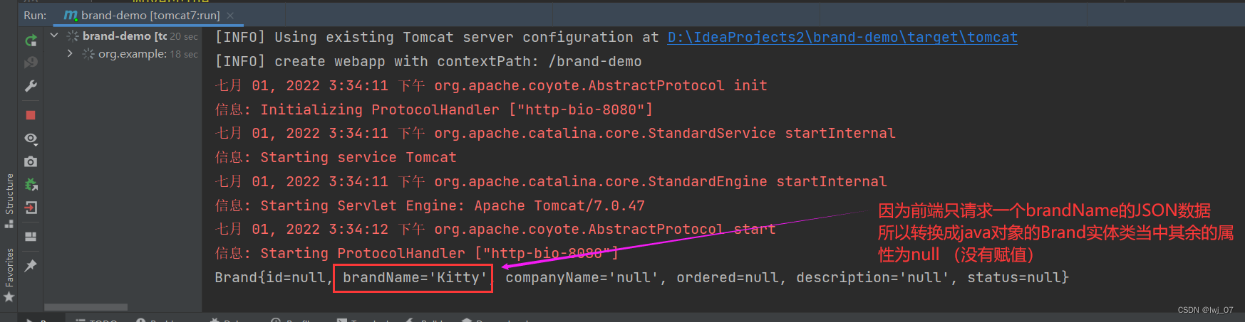 - // System.out.println(brand); // 调用Brand的toString方法 Brand{id=null, brandName='Kitty', companyName='null', ordered=null, description='null', status=null}